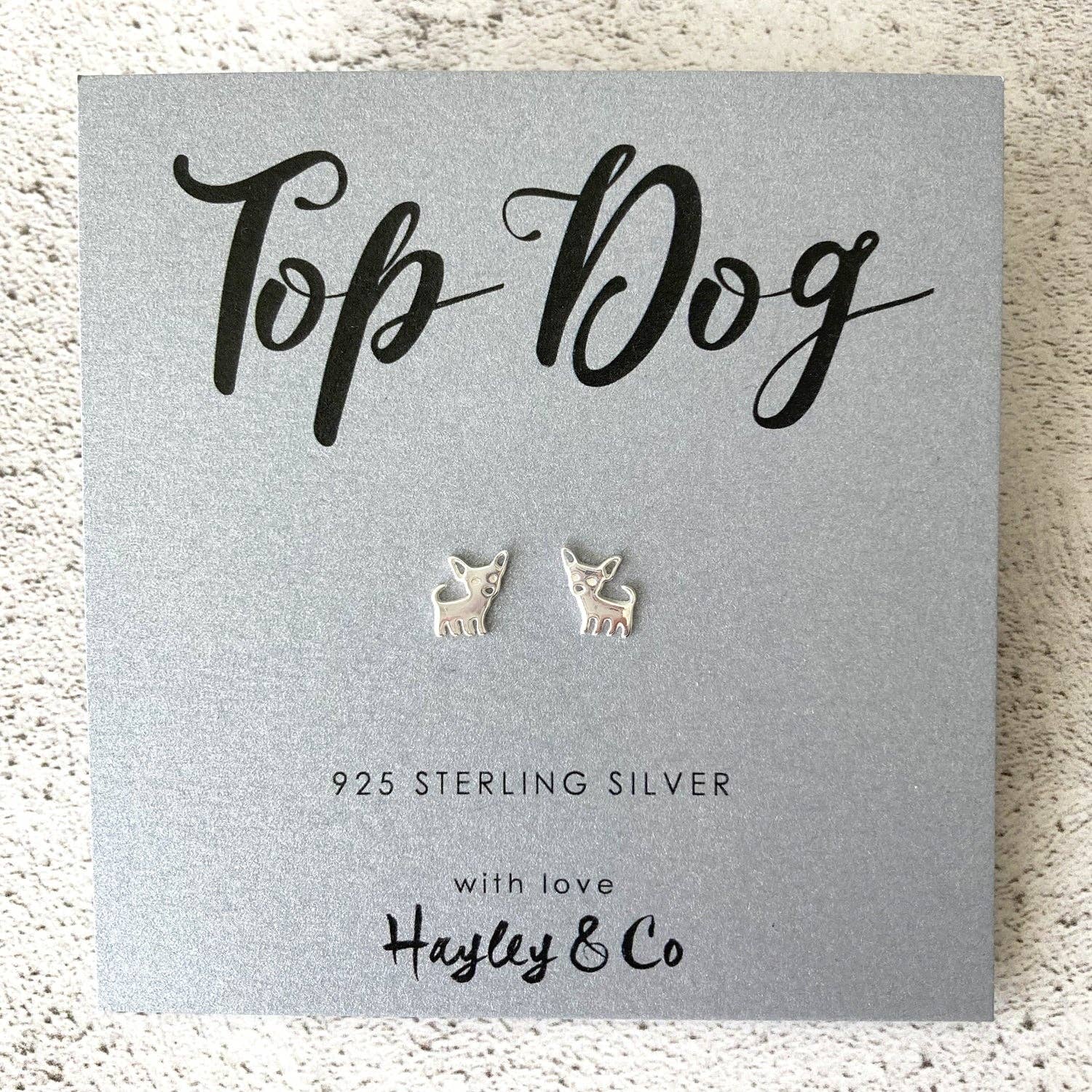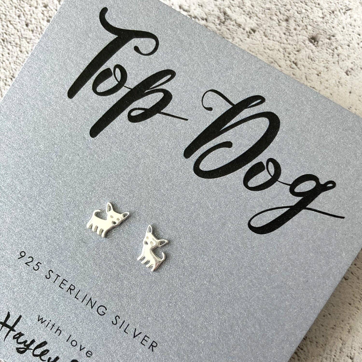 Fun little 925 sterling silver ear studs with a Chihuahua design.