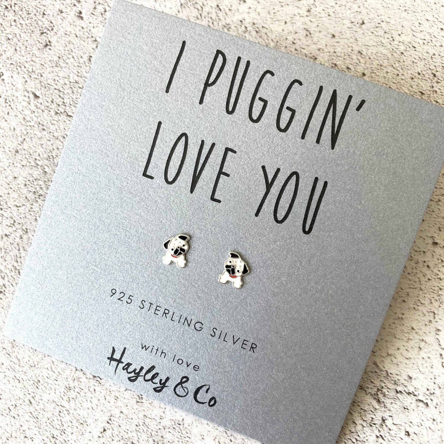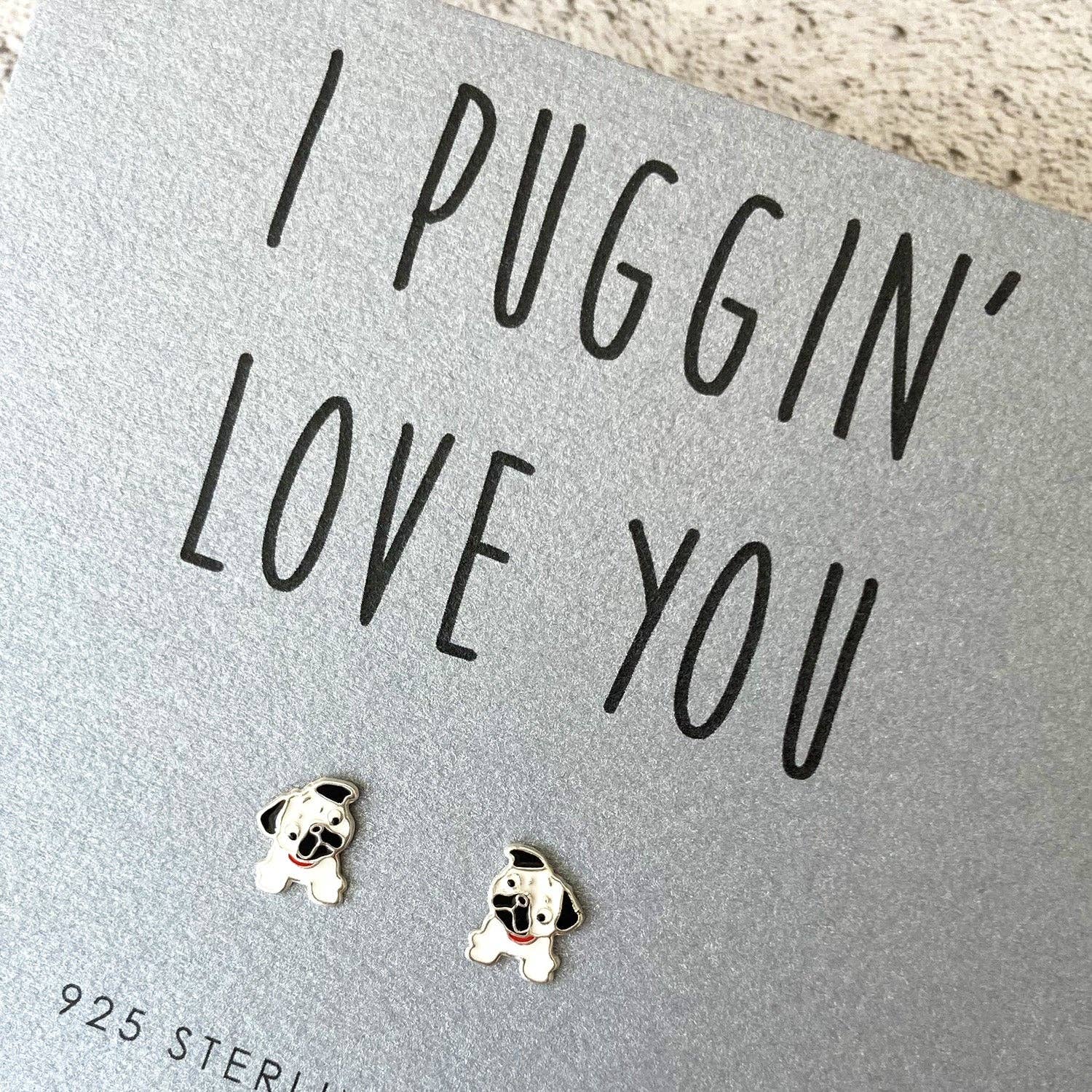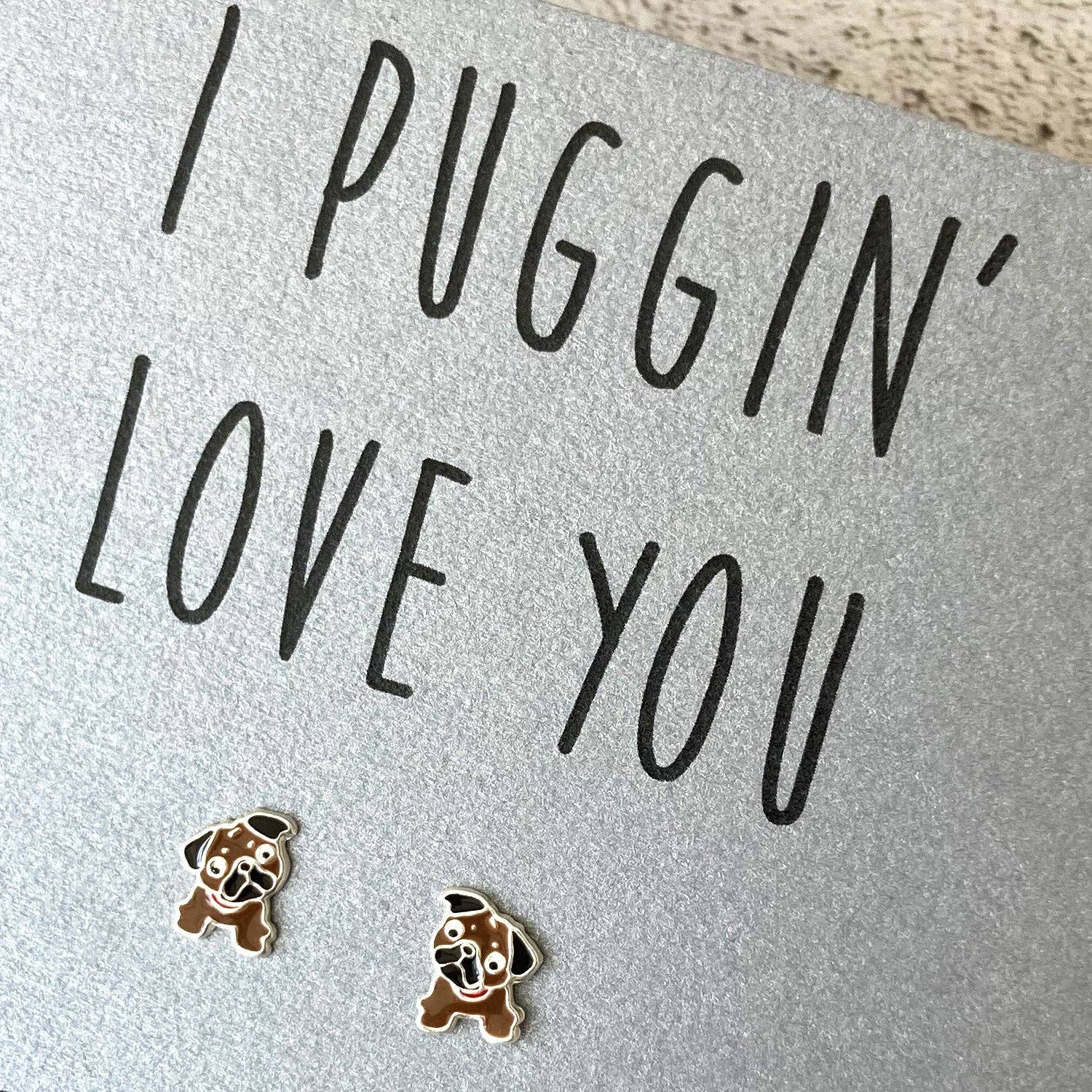 The stud earrings come on our 'I puggin' love you' card back, making them the perfect gift for a Pug Mum.